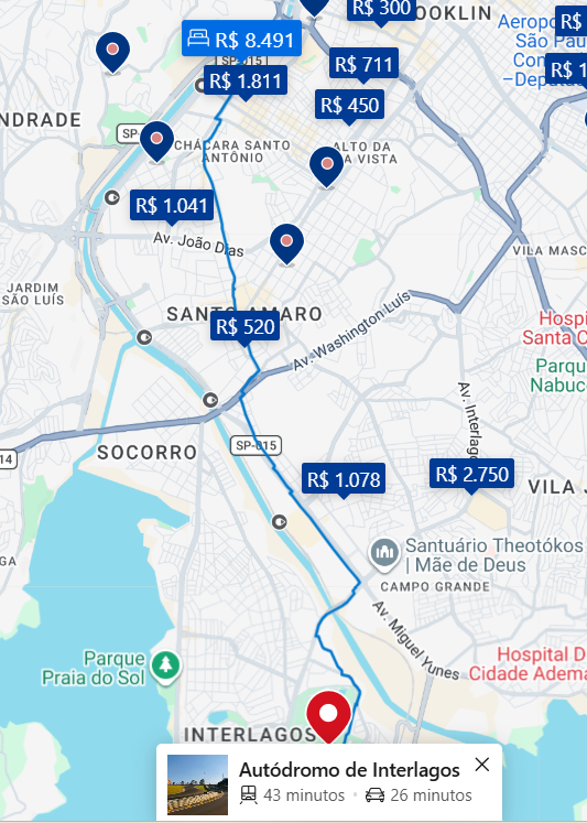 Hotéis próximos ao Autódromo de Interlagos: onde ficar durante os festivais cami, 15 de Março, 202615 de Março, 2026 Quando grandes eventos chegam a São Paulo, uma das primeiras preocupações do público é encontrar hotéis próximos ao Autódromo de Interlagos. Isso acontece porque o circuito recebe alguns dos maiores festivais de música do país e atrai milhares de visitantes todos os anos. O local, oficialmente chamado de Autódromo José Carlos Pace, fica na zona sul da cidade e é palco de eventos internacionais que movimentam toda a região. Entre os festivais mais famosos realizados no autódromo estão o Lollapalooza Brasil e o The Town (festival). Durante esses eventos, hotéis próximos se tornam extremamente disputados, já que ficar perto do local pode significar menos tempo no trânsito, mais segurança na volta e uma experiência muito mais tranquila depois de um dia inteiro de shows. Além disso, escolher hotéis próximos ao Autódromo de Interlagos pode facilitar bastante a logística da viagem. Muitos visitantes preferem se hospedar em bairros com acesso fácil à Linha 9-Esmeralda da CPTM, que possui estações próximas ao circuito. Dessa forma, mesmo quem não fica exatamente ao lado do autódromo consegue chegar ao evento com rapidez. Por isso, neste guia você vai descobrir os hotéis mais bem localizados para quem vai a shows e festivais em Interlagos. A seguir, apresentamos opções de hospedagem com boa estrutura e fácil acesso ao autódromo, ajudando você a escolher onde ficar durante eventos como o Lollapalooza ou o The Town. Table of Contents Toggle Hotéis próximos ao Autódromo de InterlagosHotéis próximos ao Autódromo de Interlagos: ibis São Paulo InterlagosDistância do ibis São Paulo Interlagos até o Autódromo de InterlagosHotéis próximos ao Autódromo de Interlagos: Requinte HotelDistância do Requinte Hotel até o Autódromo de InterlagosHotéis próximos ao Autódromo de Interlagos: JW Marriott São PauloDistância do JW Marriott São Paulo até o Autódromo de InterlagosVale a pena se hospedar perto do Autódromo de Interlagos?Quando reservar hotel em InterlagosDicas para economizar na hospedagemFAQ – Perguntas frequentes sobre hotéis próximos ao Autódromo de InterlagosQual hotel fica mais perto do Autódromo de Interlagos?Dá para ir a pé até o Autódromo de Interlagos?Qual estação de trem fica perto do Autódromo de Interlagos?Quanto custa um hotel perto do Autódromo de Interlagos?Conclusão Hotéis próximos ao Autódromo de Interlagos A seguir, veja 6 opções de hotéis próximos ao autódromo de Interlagos ou com acesso relativamente fácil à região. Essas hospedagens costumam ser procuradas especialmente durante grandes eventos como o Lollapalooza Brasil e o The Town (festival), realizados no Autódromo José Carlos Pace. Portanto, reservar com antecedência pode ser essencial para garantir disponibilidade e melhores preços. Hotéis próximos ao Autódromo de Interlagos: ibis São Paulo Interlagos Fotos: Booking O ibis São Paulo Interlagos é uma das opções mais próximas do autódromo, sendo bastante procurado por quem vai a eventos na região. Como parte da rede internacional Accor, o hotel segue o padrão da marca, com quartos funcionais, recepção 24 horas e restaurante no local. Além disso, sua localização facilita o deslocamento até o autódromo, seja de carro ou por transporte por aplicativo. Por isso, costuma ser uma escolha popular durante festivais e eventos esportivos realizados em Interlagos. Distância do ibis São Paulo Interlagos até o Autódromo de Interlagos A distância entre o hotel e o circuito é de cerca de 6 a 7 km, e o trajeto costuma levar aproximadamente 15 minutos de carro, dependendo das condições do trânsito. Por isso, o hotel costuma ser bastante procurado durante grandes eventos realizados no Autódromo de Interlagos, como o Lollapalooza Brasil e o The Town (festival). Além disso, também é possível chegar utilizando transporte público, com tempo médio de cerca de 25 a 30 minutos, combinando ônibus ou trem na região. Por isso, o hotel acaba sendo uma escolha prática para quem vai a grandes eventos no autódromo, como festivais e shows que atraem milhares de visitantes para Interlagos. Ver preços e disponibilidade do hotel → Hotéis próximos ao Autódromo de Interlagos: Requinte Hotel Fotos: Booking O Requinte Hotel fica na zona sul de São Paulo e oferece uma alternativa econômica para quem busca hospedagem próxima ao autódromo. Os quartos são simples, porém funcionais, atendendo principalmente viajantes que desejam uma estadia prática durante eventos. Além disso, o hotel oferece café da manhã e estacionamento, o que pode facilitar a logística para quem está viajando de carro para assistir aos shows ou festivais na região. Distância do Requinte Hotel até o Autódromo de Interlagos O Requinte Hotel está localizado na zona sul de São Paulo, na região de Santo Amaro, com acesso relativamente fácil ao Autódromo José Carlos Pace. A distância entre o hotel e o circuito é de aproximadamente 7 a 8 km, e o trajeto costuma levar cerca de 18 minutos de carro, dependendo das condições do trânsito. Além disso, também é possível chegar ao autódromo utilizando transporte público. Nesse caso, o deslocamento pode levar em média 30 a 35 minutos, combinando ônibus ou trem nas estações da região de Santo Amaro e da Linha 9-Esmeralda da CPTM, que atende o entorno de Interlagos. Por isso, o Requinte Hotel acaba sendo uma opção prática para quem vai a grandes eventos realizados no autódromo, como festivais, shows e corridas que atraem milhares de visitantes para a região. Ver preços e disponibilidade do hotel → Hotéis próximos ao Autódromo de Interlagos: JW Marriott São Paulo O JW Marriott São Paulo é uma opção de hospedagem de alto padrão para quem prefere mais conforto durante a viagem. O hotel pertence à rede Marriott e of