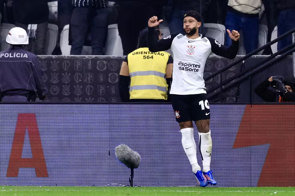Memphis diz que Corinthians poderia ter feito mais gols no Dérbi e comenta polêmicas Diogo, 31 de Julho, 2025 Atacante holandês marca primeiro gol em clássico com a camisa do Timão O atacante Memphis Depay foi o herói do Corinthians no primeiro duelo das oitavas de final da Copa do Brasil contra o Palmeiras. De cabeça, o camisa 10 marcou o gol da vitória do Timão no Dérbi por 1 a 0, nesta quarta-feira, na Neo Química Arena. Este foi o primeiro gol de Memphis em clássicos com a camisa do Corinthians. – Todo jogo contra eles é uma final para nós, especialmente em casa, a gente precisa vencer. Eu acho que trabalhamos duro, tivemos vários momentos melhores no jogo. Poderíamos ter feito mais gols e feito uma vantagem maior, mas conseguimos o resultado – afirmou o holandês, na saída de campo. Memphis também tratou das polêmicas recentes envolvendo ele, mas sem entrar em detalhes. – Eu estou aqui para trabalhar duro, várias coisas estão sendo ditas, colocadas fora de proporção, mas estou aqui para tentar ajudar o time. A mensagem é a mesma de setembro do ano passado, quando cheguei, tento fazer o mesmo, melhorar o time, vamos continuar assim. Gol de Memphis em Corinthians x Palmeiras No último dia 7, o jogador faltou a um treino do Corinthians sem avisar. Antes disso, em junho, o holandês notificou o clube por conta de atraso nos pagamentos da premiação pelo título do Paulistão – ele tem direito a receber R$ 4,7 milhões pela conquista. Contratado pelo Timão em setembro do ano passado, Memphis disputou 47 de 66 jogos da equipe desde então, com 15 gols e 14 assistências. A segunda e decisiva partida entre Corinthians e Palmeiras será na quarta-feira que vem, no Allianz Parque. O Timão tem a vantagem do empate. Esportes Futebol corinthiasMemphis
